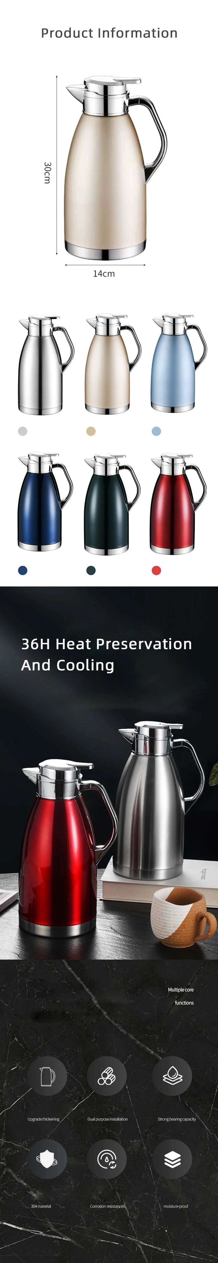 316 Stainless steel coffee pot thermos large capacity vacuum kettle insulated hot water bottle cold retention tea jug